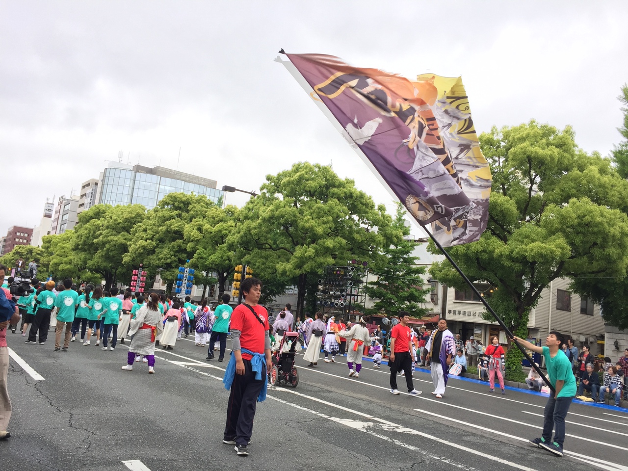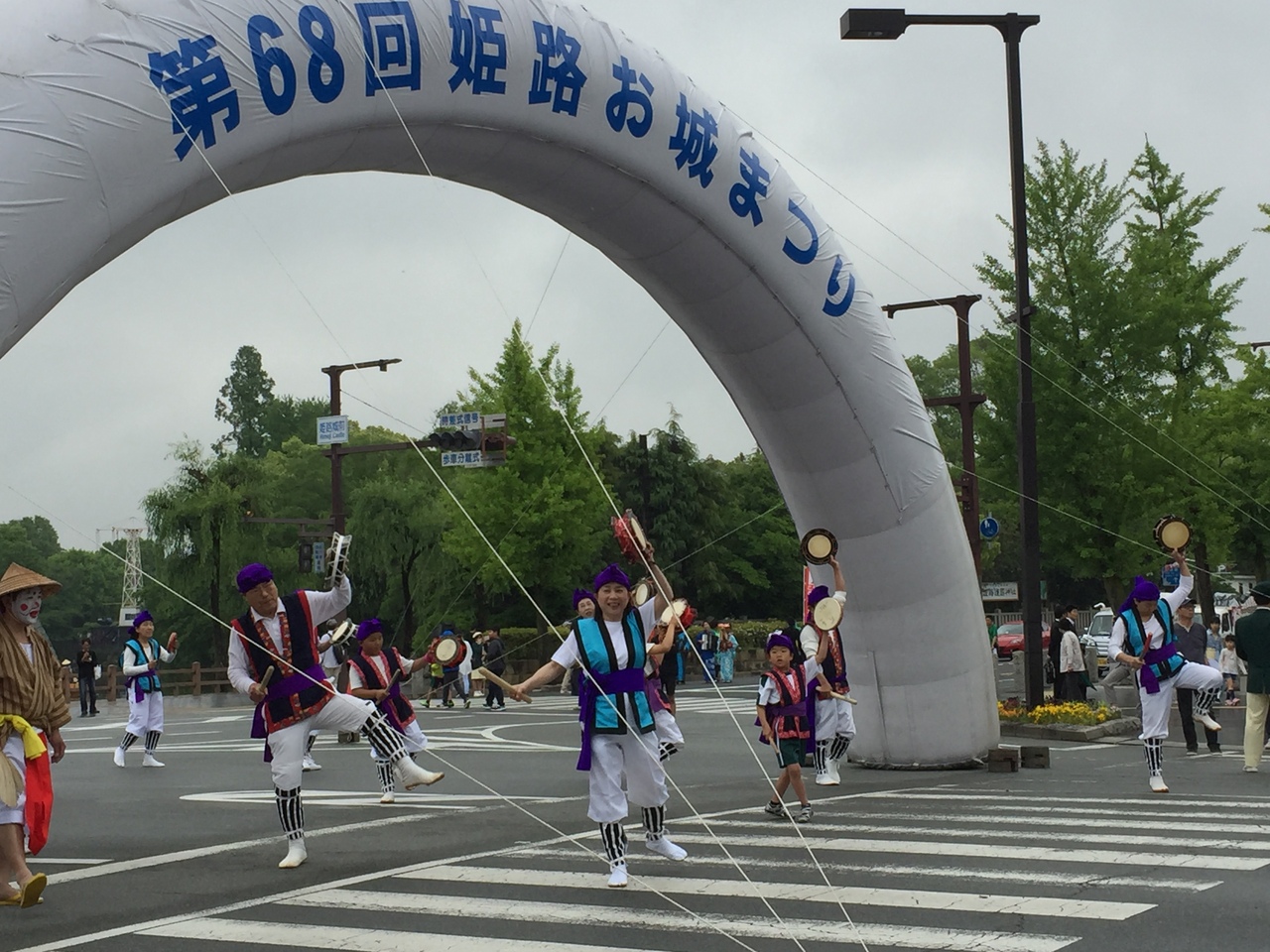 お城まつりは戦後間もない昭和23年から続く由緒あるお祭りらしいです。姫路駅から商店街を通って行くと いつのまにか 着きます。あいにくの小雨でしたが、よさこいや、マーチングバンド、エイサー等の市民パレードやってました。道幅が広いので 広々と見る事が出来 楽しかったです。