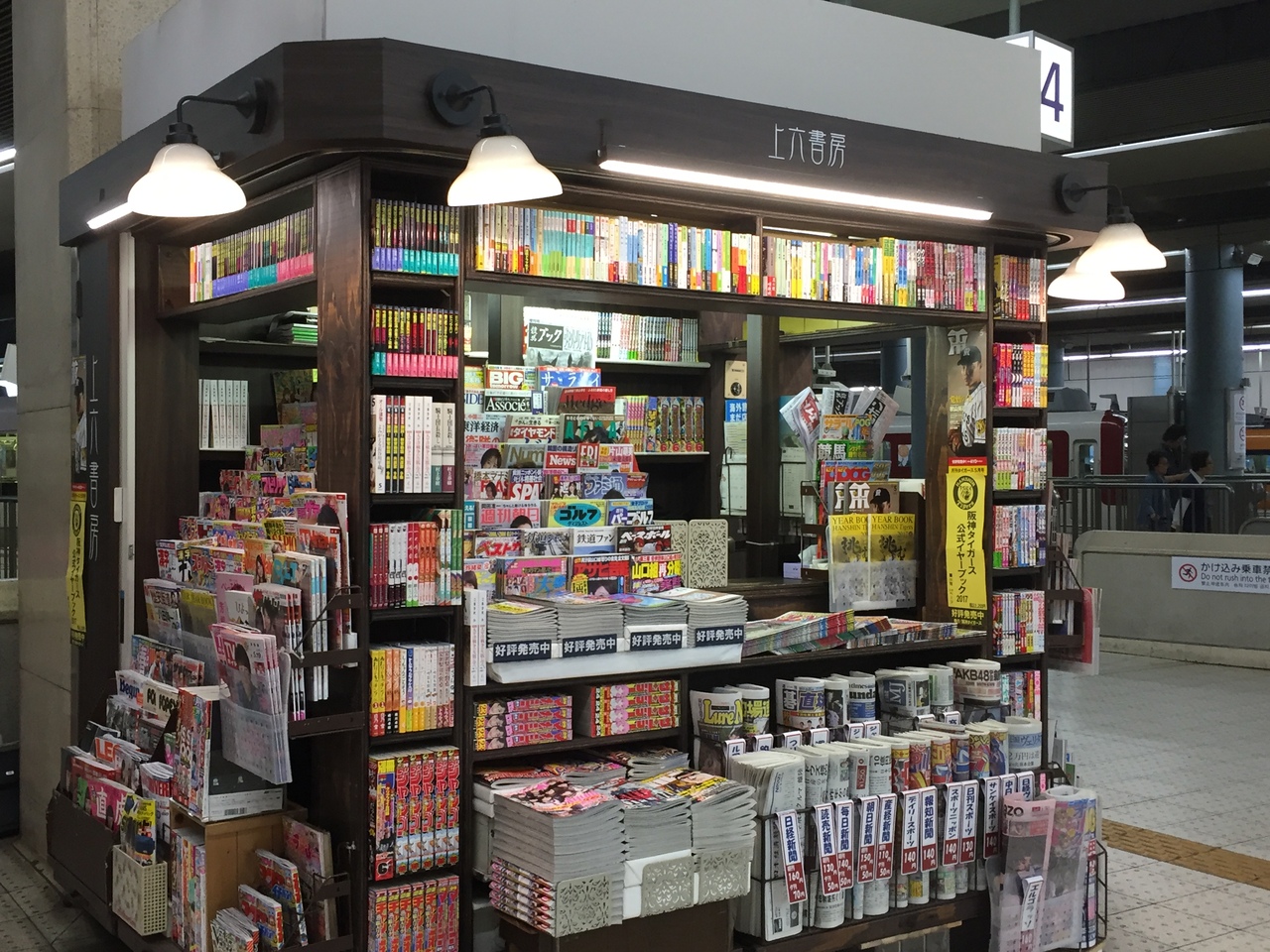 近鉄大阪線 大阪上本町駅のホームには、お菓子や、お土産などを売ってる 売店の他に 本専門の『上六書房』という売店があります。本や雑誌、新聞等の書籍のみなので、小説などの文庫本や、話題の書籍などが置いてあり 特急などの長い距離を乗車する時には かなり便利です。売店だと 種類が限られてますからね。