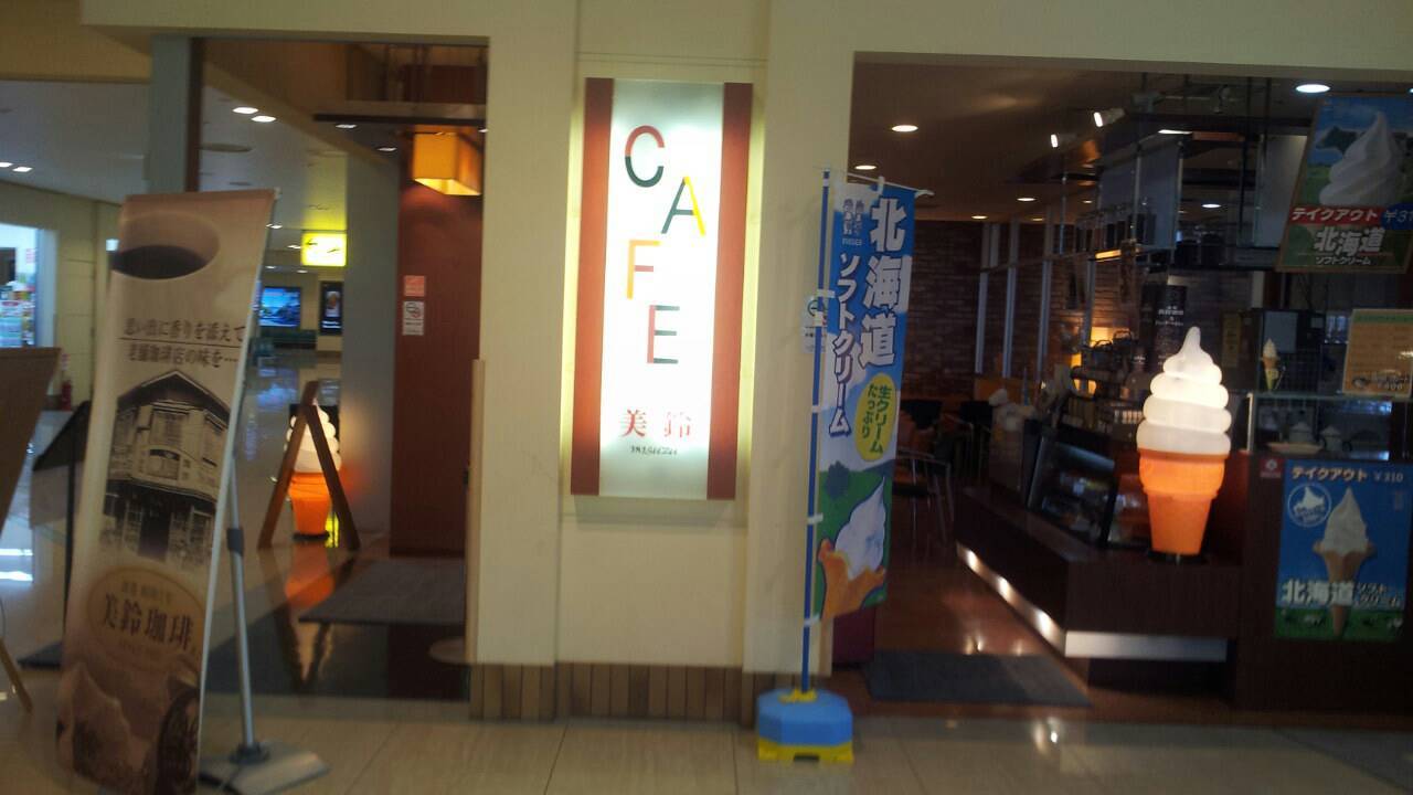 函館空港1階にあるカフェ美鈴さんへ。昭和7年開業の、老舗の珈琲屋さんと店頭に書いてありましたので、期待して入店しましたが雰囲気やお味は普通かな ソフトクリームの看板も有ったので注文しましたが 店内と テイクアウトではお値段が高い違うので次回は テイクアウトでソフトクリームだけ頂こうかなと思います。