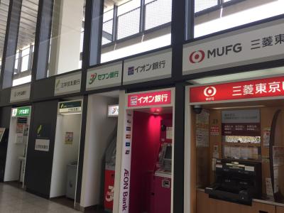 東京に次ぐ大都市なのに伊丹空港はすこし小さい様な気がします。でもコンパクトな方が移動が楽だ良いのかもしれませんね。ANAの方にもJALの方にも りそな銀行、三菱東京UFJ銀、三井住友銀行、イオン銀行、セブン銀行のATMがあり便利です。休日も営業している郵便局もあります。