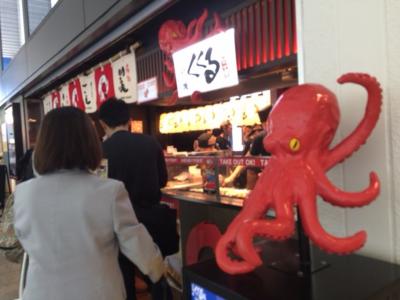 南ターミナル(ANAの方)の1階にある たこ家道頓堀くくるさんへ。行列が出来てるのですぐに分かりますよ 行列がだんだん増えてくると 何度も店員さんが『お店に沿って並んで下さーい。膨らまないで下さ~い』っておっしゃってました いつも行列が出来てるんだろうなぁ。
