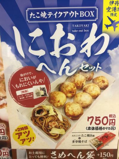 長居する雰囲気ではないので そんなに待たずに順番が来ました。持ち帰り用に『におわへんセット』と言うのがあり、ソースが後がけ出来る様に別添えされているらしいです。でも機内で食べるにはちょっと勇気いるかな(笑)- 旅行時期