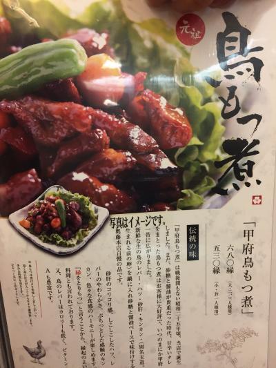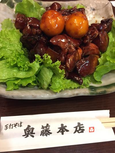甲府に行ったので 鳥もつ煮を食べようと 有名な奥藤本店さんへ。午後8時に入店 8時15分にラストオーダーで良いかと確認があったので、お目当のお蕎麦や、鳥もつ煮(小 530円、大680円) 大 、お酒をオーダー。鳥もつ煮はタレが甘くて美味しくて 大満足でした。化粧室に行こうと奥の方へ行くと、テーブル席が多数と、お座敷などもありおおきなお店でした。レジの横には 昨年安倍首相が来店されたらときの写真が飾ってあり 更に美味しく感じましたよ(笑)