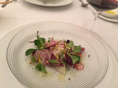 武蔵小杉駅から数分の所にある アンブレラさんへ。イトーヨーカドーの裏手です。人気店のようで皆さん予約されての来店でした。アラカルトもありますが、コースは4500円 4980円 5980円があり 真ん中の4980円のコースを注文。前菜3種、野菜サラダ、前菜メニューより2種 、パスタ系メニューより1種、デザート、コーヒーが付きます。野菜サラダは藤沢野菜のサラダ仕立てか焼き野菜を選ぶのですが、藤沢野菜のサラダ仕立ては何十種類もの野菜を小さくカットしたものが 綺麗に並べられていて 可愛らしいので食べてみたら良いと思います。何を食べても 美味しくて、手が込んでいて 満足です。ワインの種類も多くてやから辛いので、ソムリエの方に選んで頂き、美味しいワインと美味しいお料理を楽しむことが出来ました。