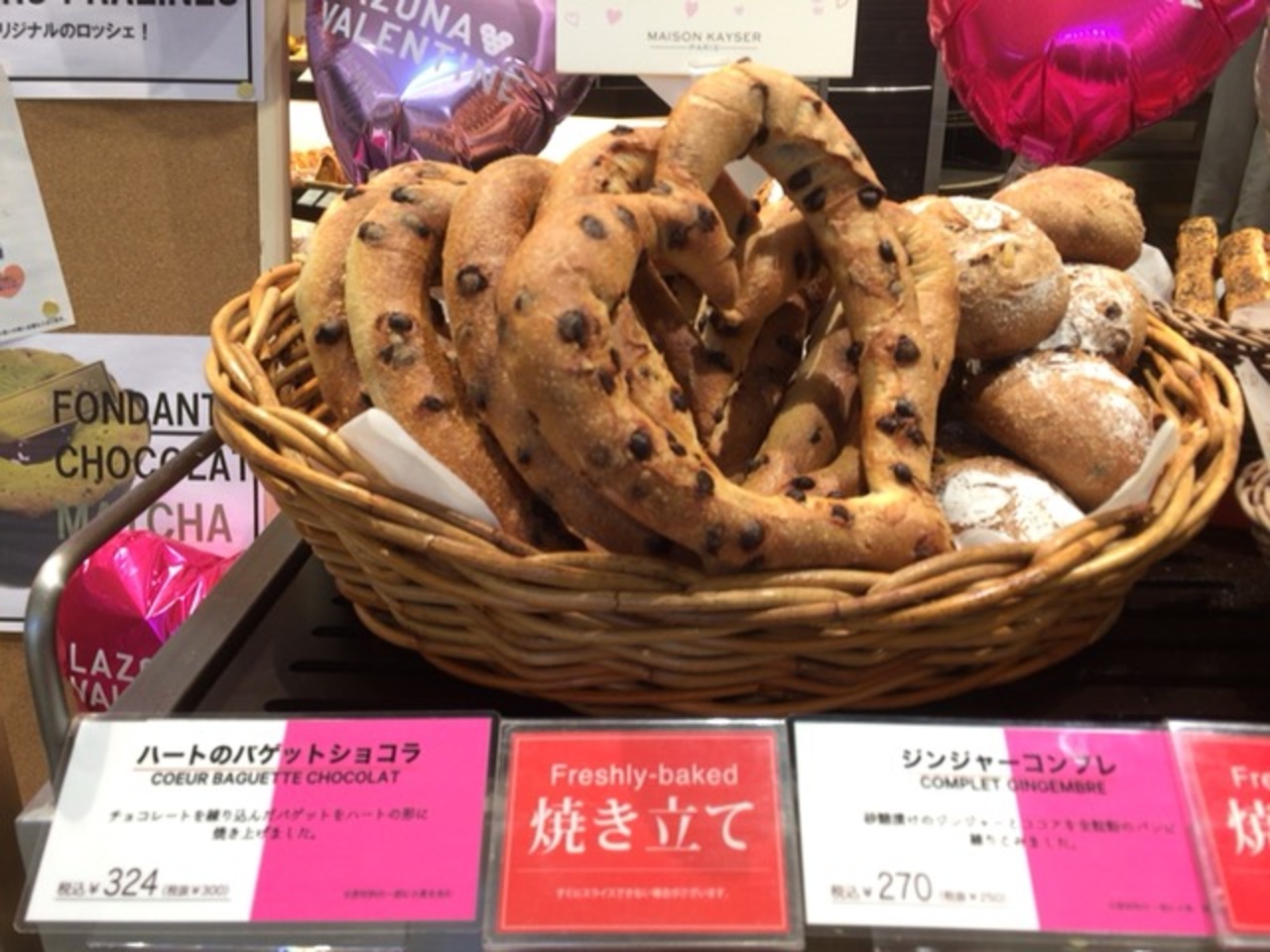 1人でも入りやすいカフェを併設していて利用頻度が高いラゾーナ川崎のメゾンカイザー。オーバー300円が多いので リッチになったと勘違いさせられるパン屋さんです(笑)バレンタイン商戦が始まってるのかハート型のパンが有りました。来月になったら お友達んちへの手土産にしてみたいです。何を食べても生地が美味しくて安心です。
