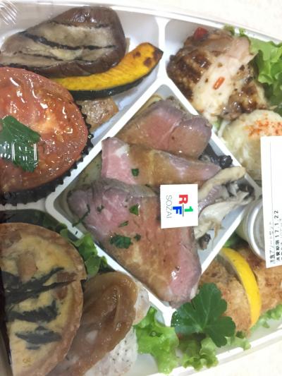 横浜にお買い物に行った帰り、何か食べて帰ろうかとお店を探すも良いお店が見つからずデパ地下で買って帰る事に。定番のアールエフワンさんで盛り合わせ的なのを購入。ローストビーフ(下にはジャガイモとパスタ)ハーブで味付けしたグリルチキン、ポテトサラダ、キッシュ、太いソーセージの輪切り、野菜のグリル(トマトって焼くと美味しい)少しずつ色んな種類が入っていて 楽しみながら頂きました。