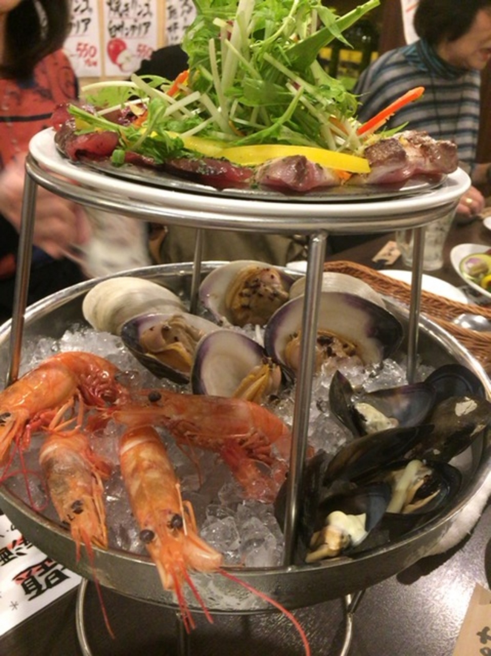 忘年会で武蔵小杉駅から3分ほどのナチュラさんへ。コースを予約。サービスでジョッキスパークリングが乾杯用に出て来ました 8人でバトル2本空けてました。飲み放題のメニューはワインや生ビール チューハイ等豊富でした。カルパッチョやムール貝海老などのシーフードプレート、バーニャカウダ、カマのガーリック焼き、チキン、しらす山盛り等コストパフォーマンス抜群の大満足な忘年会でした。