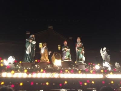 『ホワイトクリスマス』という 人工雪を5分間降らせるイベントがあり、時間を合わせて行ったのですが、トラックからホースで雪を降らせる感じで微妙でした。でも子供さんは喜んでおり、有りかな(笑) 今夜は、暖かくて良かったですが、これから先暖かくしてお出かけしてくださいね。- 旅行時期