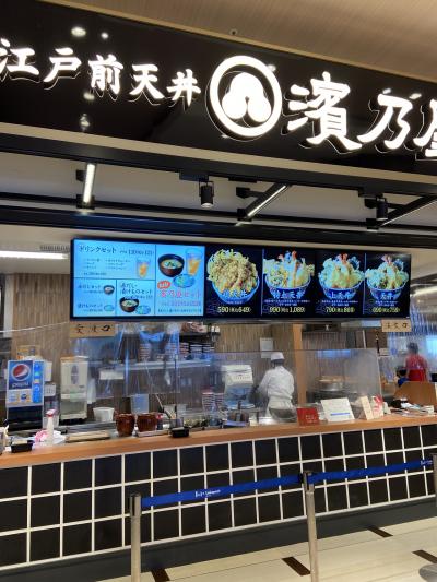 ららぽーと和泉のフードコート内にある 天丼のお店です。こちらはフードコート内にありながら、お料理を作ってる人達が割烹屋さんの様な白いお帽子と、白いエプロン姿で、凄くいい感じです。天丼は熱々で、プラス200円でお味噌汁と、お漬物、アイスコーヒーが付きお得です。