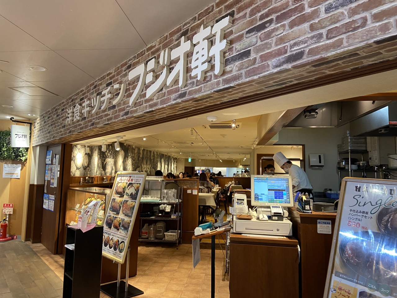 三井アウトレットパーク大阪鶴見内にあるフジオ軒さんは、テーブル席や、カウンター席などがあります。お店の雰囲気がアウトレットパーク内にある感じではなくて好きです。ハンバーグは、ソースが和風、デミグラス、フォンデュチーズなど7種類から選べますので、何回も行っても飽きることはありません。