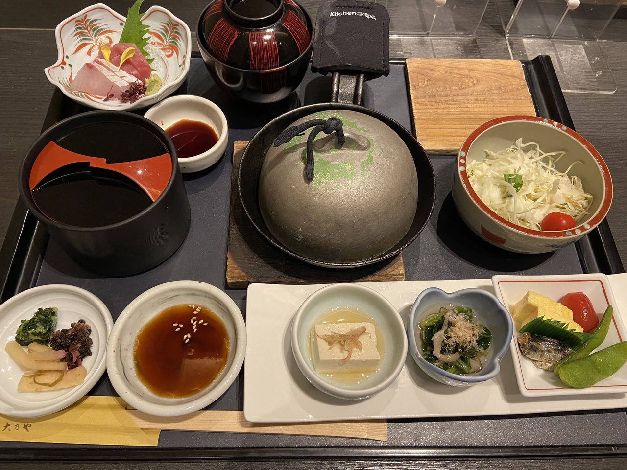あべのハルカス13階にある大乃やさんに行って来ました。こんな時期ですので、個室をあらかじめ予約させてもらいました。国産牛フィレ肉の御膳を注文。お刺身、サラダ、茶碗蒸し、別に熱々の天ぷら盛り合わせ、等等品数が多くて コスパ良かったです。