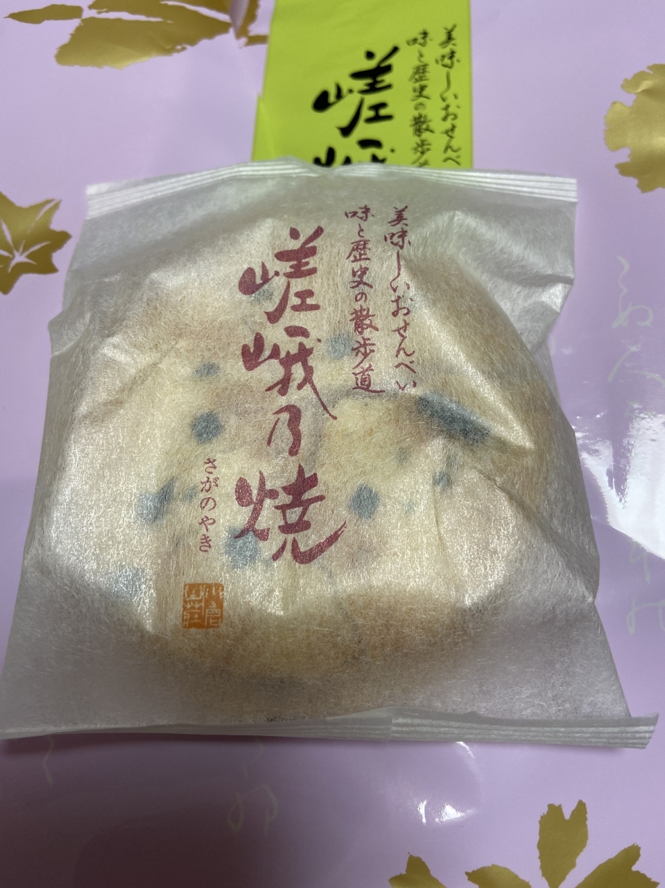 贈り物にも良いし、美味しいから自分用にも良い商品がある おかきが美味しい小倉山荘さんです。今の時期は桜を意識した綺麗な商品がたくさん並んでいましたが、今日は自分用なので、大好きな嵯峨野焼きを購入しました。