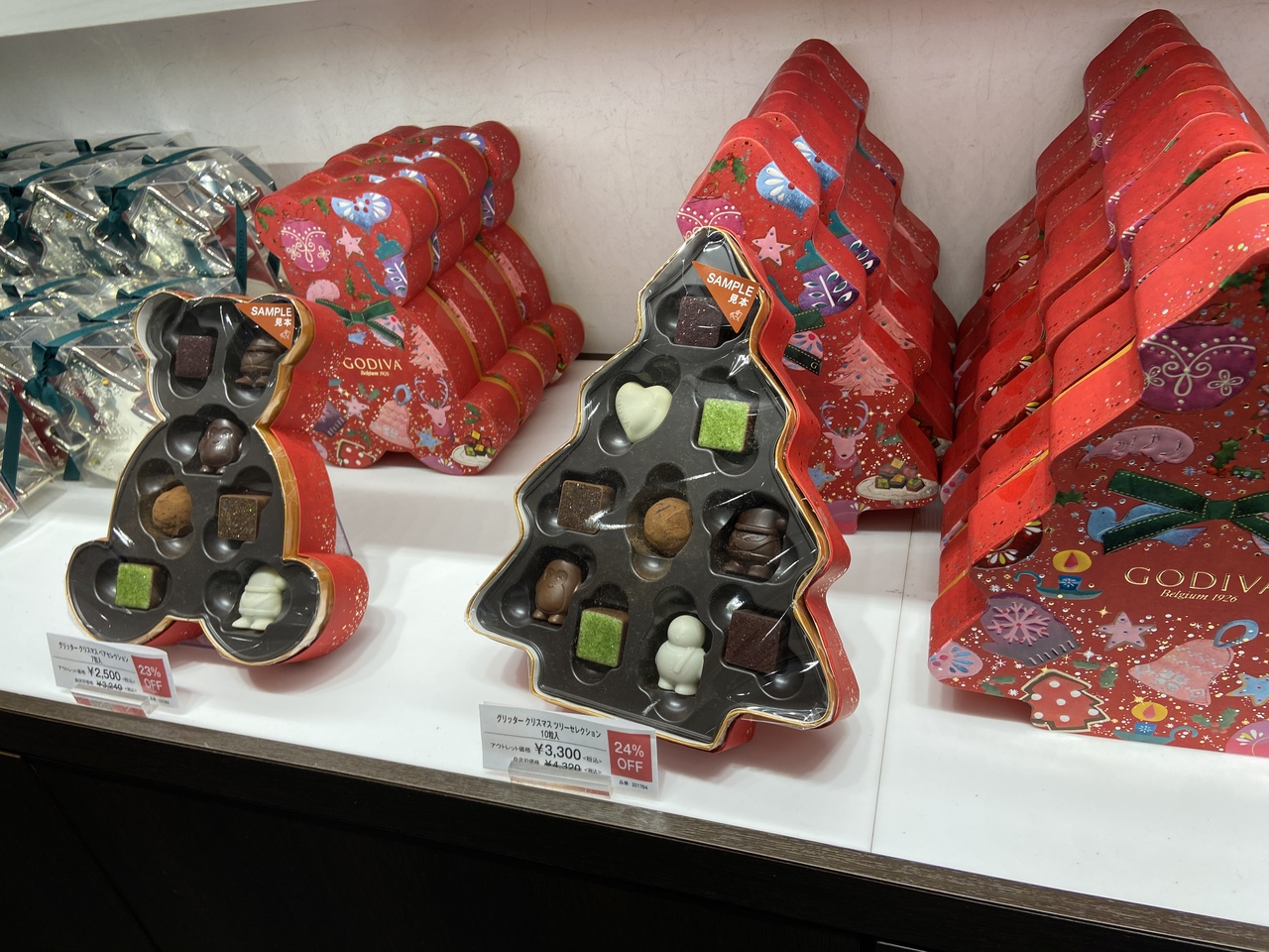 りんくうプレミアムアウトレットの中にある、美味しいチョコレートで有名なGODIVAに行って来ました。クリスマスの時期にデパートで売ってたような豪華な赤色のパッケージのチョコレートが24%オフで販売されていました。