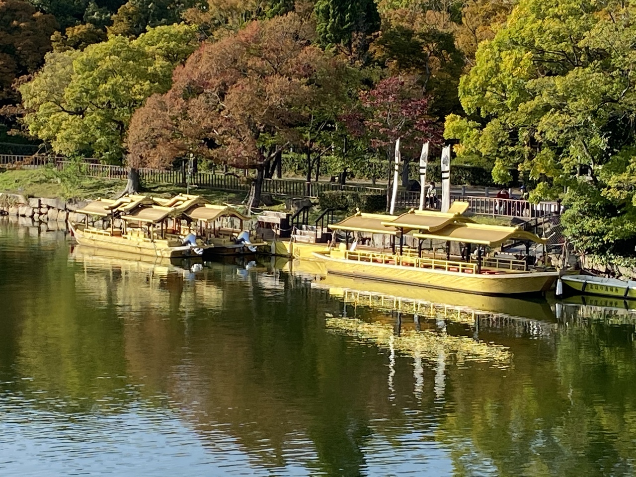 前に来た時は気付きませんでしたが、大阪城のお堀を説明付で秀吉公が好きそうなピンピカのお船でクルーズしてくれます。『ござぶね』と読むそうです。乗り場の近くにある乗船券売所で、チケットを購入(1500円)。本数が多いので、待たずにすぐに乗ることができましたが、たまたまなのかもしれません。