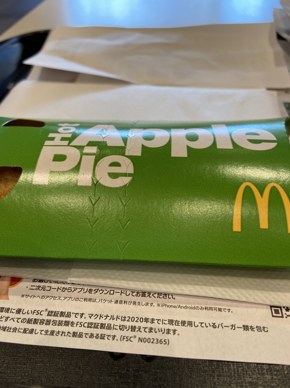 木村拓哉、松田聖子のCMソングなど最近やたらと印象に残るマクドナルドです。コーヒーが飲みたくなりマクドナルドへ。入口には消毒液は無かったですが、店内ではスタッフの方が常に消毒剤スプレーを持ってテーブルや椅子を消毒してました。アップルパイ美味しかったです