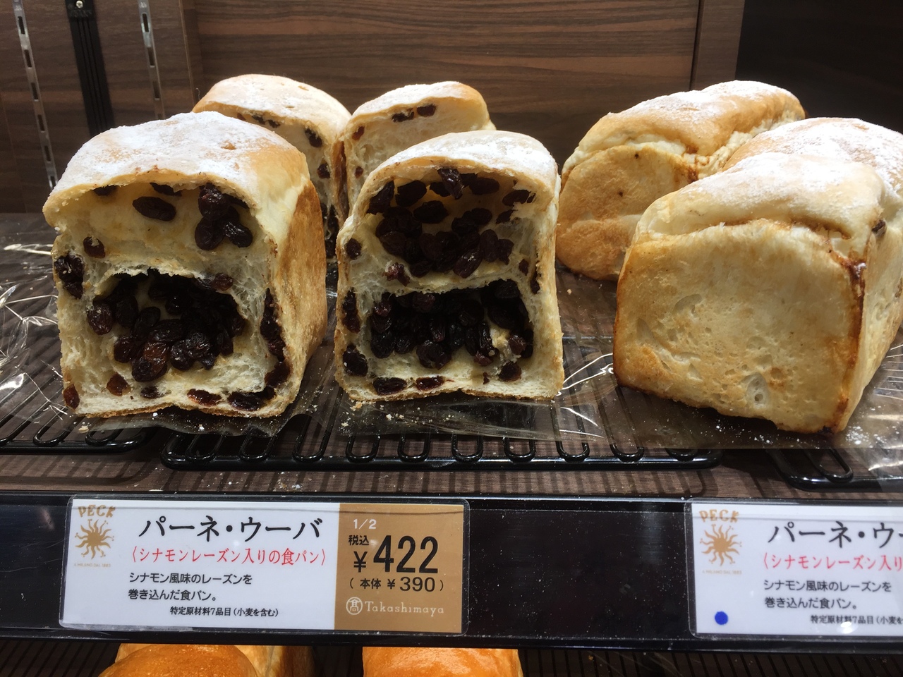 玉川高島屋のパックさんに久々に行ったら、リニューアルされていてました。こちらの高島屋さんには和風惣菜パンが美味しいHAMADAYAさんや、フランスパンが美味しいしいビゴの店など美味しいパン屋さんが多いですが、ここよパーネウーペはメチャぎっしりとレーズンが詰まっていておススメです。半分にカットされてるのも量が要らないわたしには助かります。