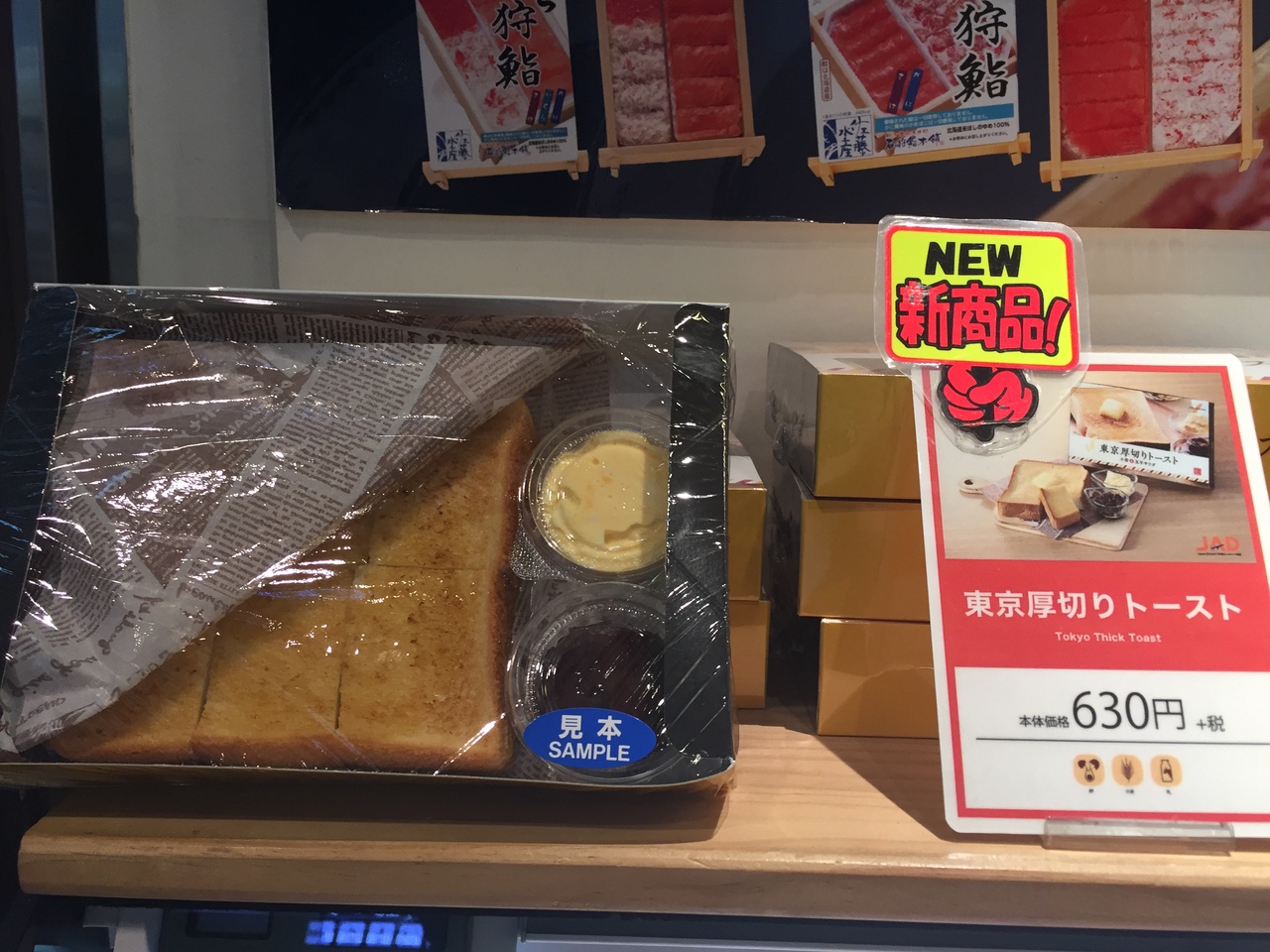 羽田空港第1ターミナルにある空弁工房には寄りますが、東京厚切りトースト(630円)というのを初めて見ました。箱の中には本当にトースト(6つにカットされてました)もあんこ、卵ペーストのみが入っていました。美味しかったですが 冷めていなければなぁ~。