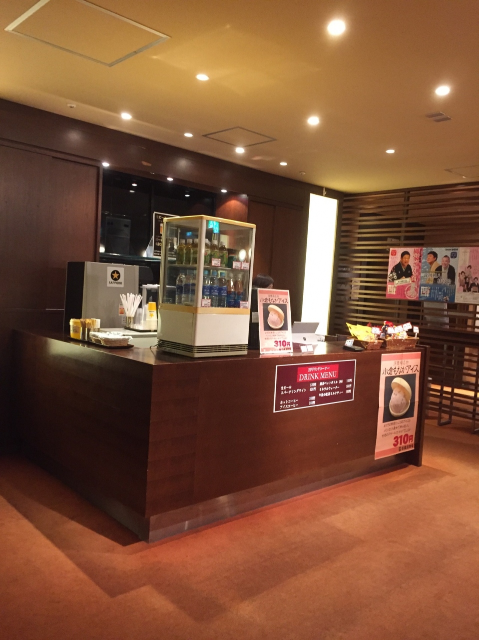 新橋演舞場2階にあるドリンクカウンターです。1階と比べてかなり規模は小さいですお弁当などは売ってなかったと思います。 小倉もなかアイス推しだったのでいただきました。もなかに挟まれた小倉アイスはまん丸で甘過ぎず美味しかったです。
