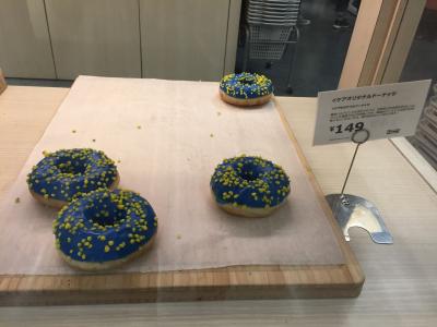 久々にIKEAさんに行ってきました。店内は超広いので おしゃれな商品を見ながら、ウォーキングにもなります。1階の食品を売ってる一角にある ベーカリーコーナーにイケアオリジナルのドーナツ(149円)は鮮やかなイケアブルーで綺麗でした。