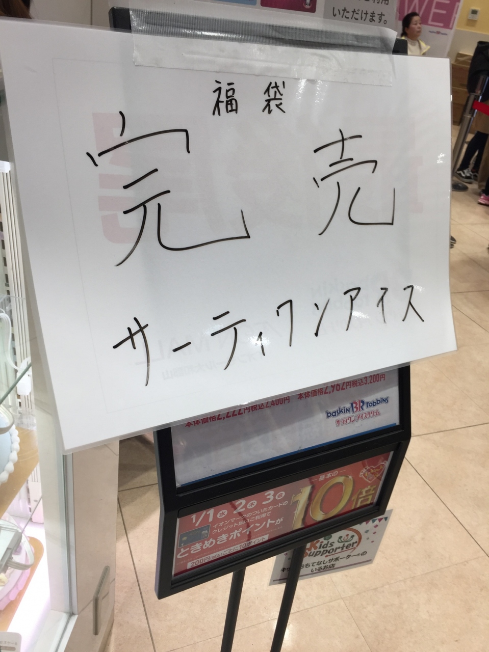 イオンモール大和郡山の中にある サーティーワン アイスクリームです。サーティーワンは期間限定の味のアイスクリームがあるので、楽しみです。ウィンターショートケーキも気になりましたが、ポッピングシャワーの弾けが二倍ということで、並んでいただきました。