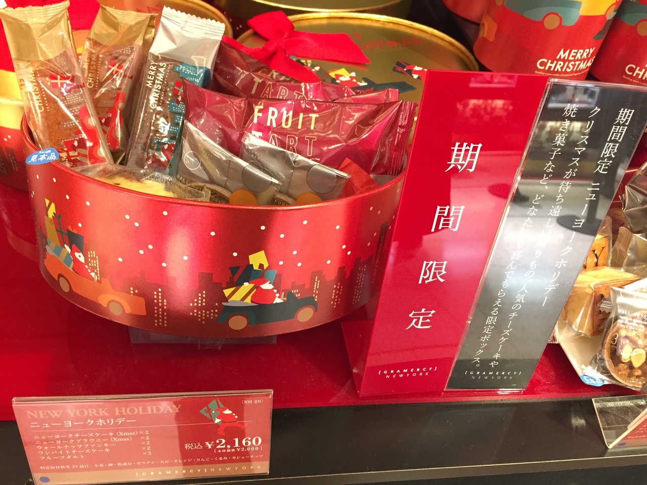 日本橋高島屋さんでクリスマスのラッピングをしたプレゼントを探していたところグラマシーニューヨークさんの ものが コスパが良いように感じました。楕円形のクリスマスっぽいボックスに5種類のお菓子が入ってます。ボックスにおリボンが付いており、ラッピングはしてもらえませんでしたが、十分可愛らしいと思います。