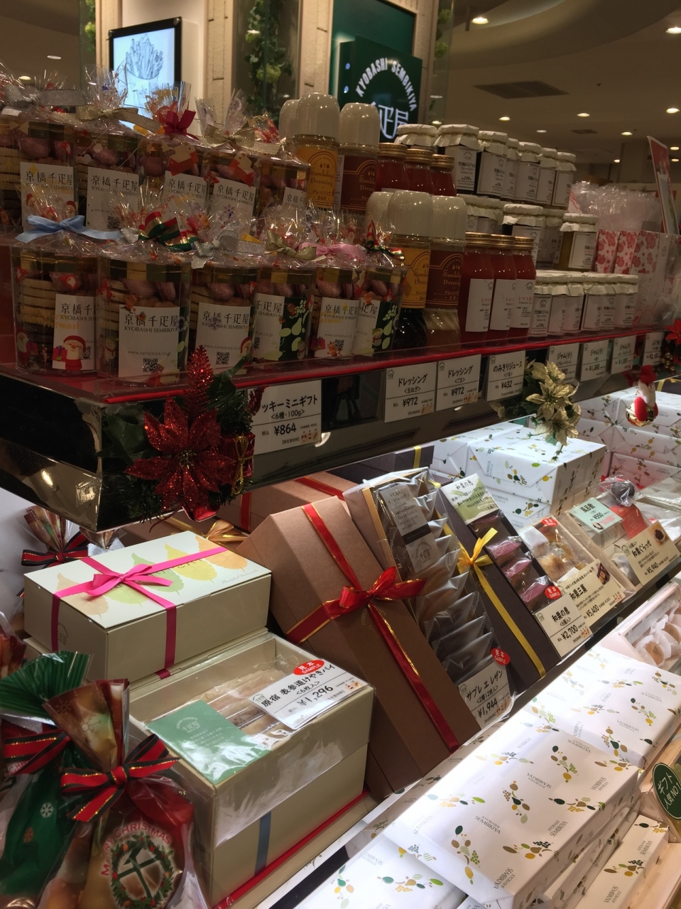 品川駅の駅ナカにある果物の王様千疋屋さんです。店舗面積が狭いのでショーケースにはギッシリとケーキが並べられています。クリスマス時期だからか、クッキーなどのラッピングが可愛いらしいおリボンになってました。