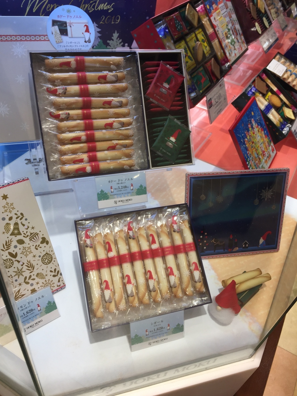 エキュート品川にあるヨックモックさんです。クリスマスのプレゼントに、日持ちのするものが良いとグルグル見回ってましたら、可愛らしいクリスマス仕様の缶に入った お菓子が数種類ありました。お値段も1000円くらいから~あり、選択肢が多くて良かったです。