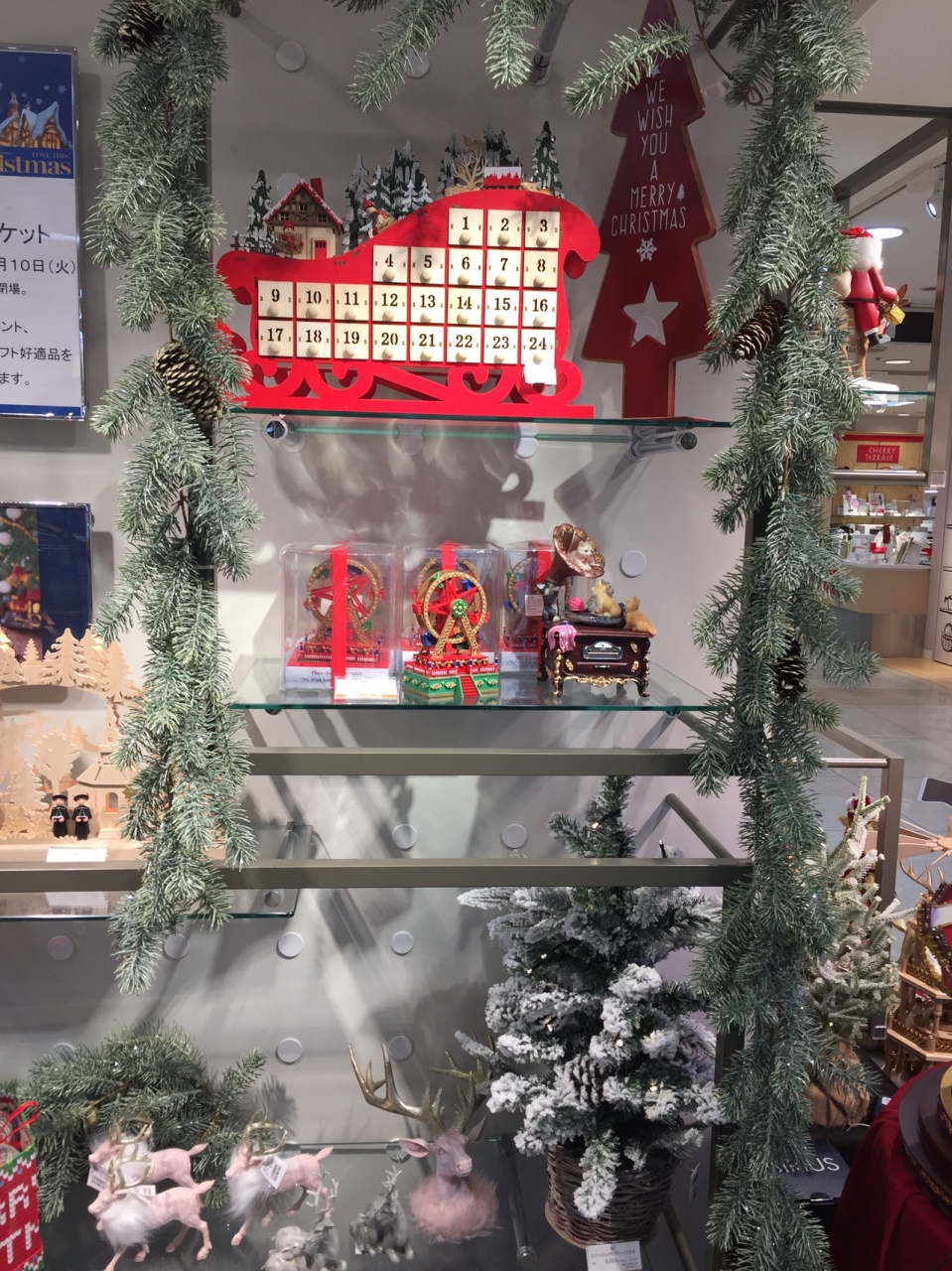 館内はクリスマス向けの商品や、デコレーションでとても華やかな雰囲気でした。定員は有りますが、ハーバリウム作りや、クリスマスリース作り、スノードーム作りなどのワークショップ開催しており、お得に手作り体験出来ます。21日にはサンタクロースが来店して一緒に撮影する事が出来るみたいてますよ。