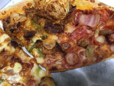 久々に自宅でピザを頂きました。スタッフの方のおススメで、1枚のピザで4種類の味を楽しめるクアトロピザの 違う種類を2種類注文しました。味が飽きずに良かったです。 ホームパーティーには欠かせないですね。ワインや、ビールが進みました。
