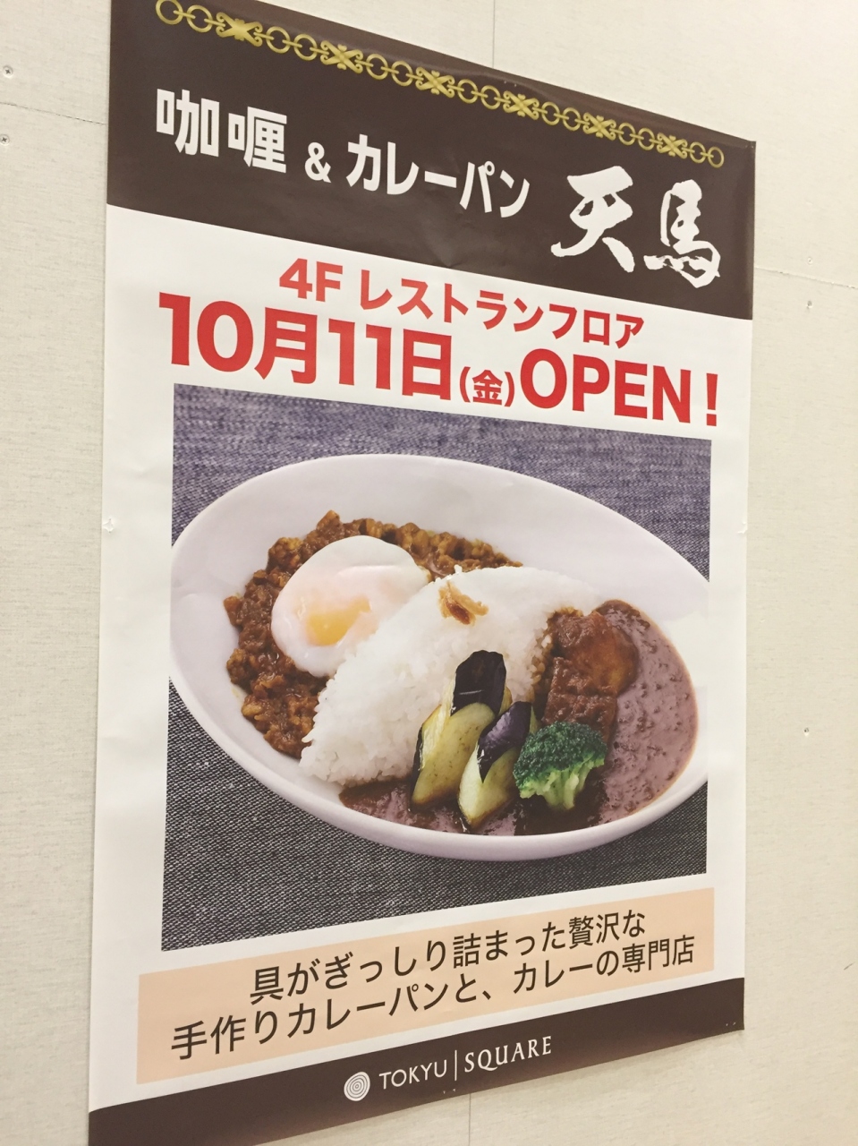 武蔵小杉にある東急スクエアに行ってきました。館内はハロウィンの飾り付けがあちらこちらにしたあり、盛り上がってました。レストランフロアに10月11日にカレーライスとカレーパンで有名な天馬がオープンするみたいです。中野までよく食べに行ってたので嬉しいです。