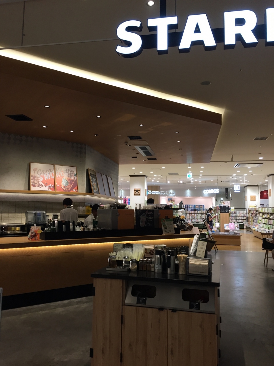 アピタテラス日吉綱島の中にある スターバックスに行って来ました。扉などはなくオープンな空間でした。木製の椅子で(壁際だけ違う椅子でした) 本を読んでいる方が多かったのです、くまざわ書店の横にあるので、ひょっとして本を持ち込んで良かったのかもしれません。