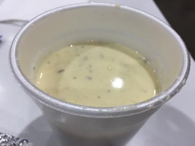 川崎コストコ にあるフードコートはよほど早い時間か、遅い時間でない限り お席の確保が大変です。コストコのホットドッグは安くてボリュームがあり、大好きなのですが、ドリンクがセットになっているので、単品メニューが出来たらいいなぁ。この日は体がクーラーで冷えたので、ドリンクはもったいないけど、飲まず、クラムチャウダーをいただきました。たっぷりの量で美味しかったです。