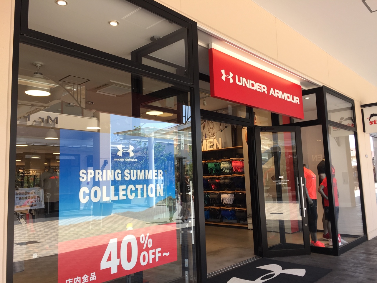 昨年秋にグレードアップオープンした エリアにあります。むきむきの人しか着てはいけないイメージのアンダーアーマーでしたが、店内にはいろんなタイプのスポーツウェアがありました。デパートなどと比べてとんでもなくお安い商品もありました。