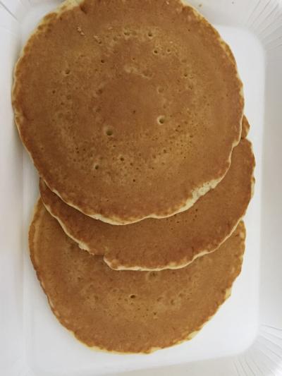 マクドナルドのパンケーキが食べたくなり、久々に朝マックをテイクアウトしました。セットでハッシュポテトとカフェラテをチョイス プラス20円で大きなサイズになるそうです。マーガリンとシロップとプラスチック製のカトラリーかナイロン袋に入れてくれてました。今はフワフワの美味しいパンケーキが多いですが、たまにはぺったんこのパンケーキも美味しかったです。