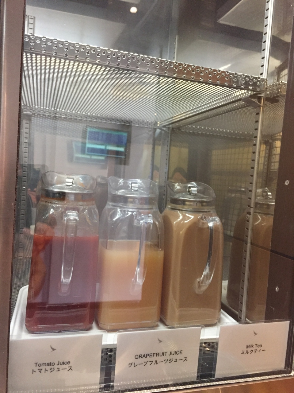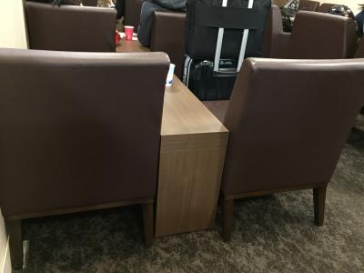 出国時手続き後 左のほうへ進み 初めて見えるエレベーターに乗って到着です。羽田空港の様においしい担々麺などいただけるとヌードルバーは有りません。久々の訪問ですが、ドリンクコーナーが随分変わっている印象です。ソフトドリンクはペリエ以外 は、ガラスのポットの様な容器に入っており、いちいちガラスに注がなくてはなりません。時間帯が良かったのか 空いていてゆっくりはできました。