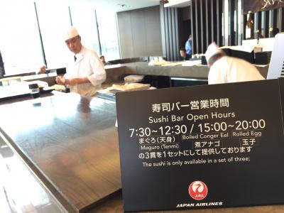 成田空港にあるJALファーストクラスラウンジは 美味しいシャンパンや、日本酒(いつも3種類なのですが、今日は2種類でした) 、職人さんが握ってくれるお寿司を頂けるので おきにいりです。もちろんJAL特製カレーも美味しくいただきました。