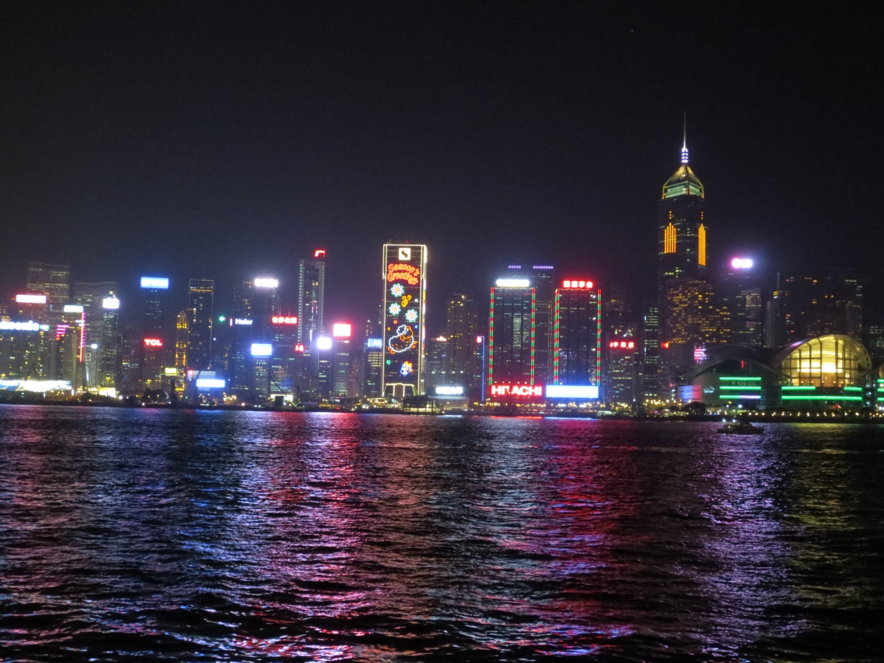 香港市のシンフォニー オブ ライツやビル群の夜景を楽しむには最高の場所です。対岸に広がるきらびやかなイルミネーションは本当にきれいですよ。