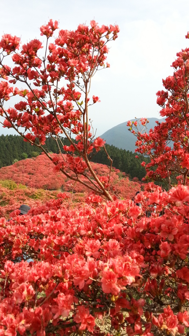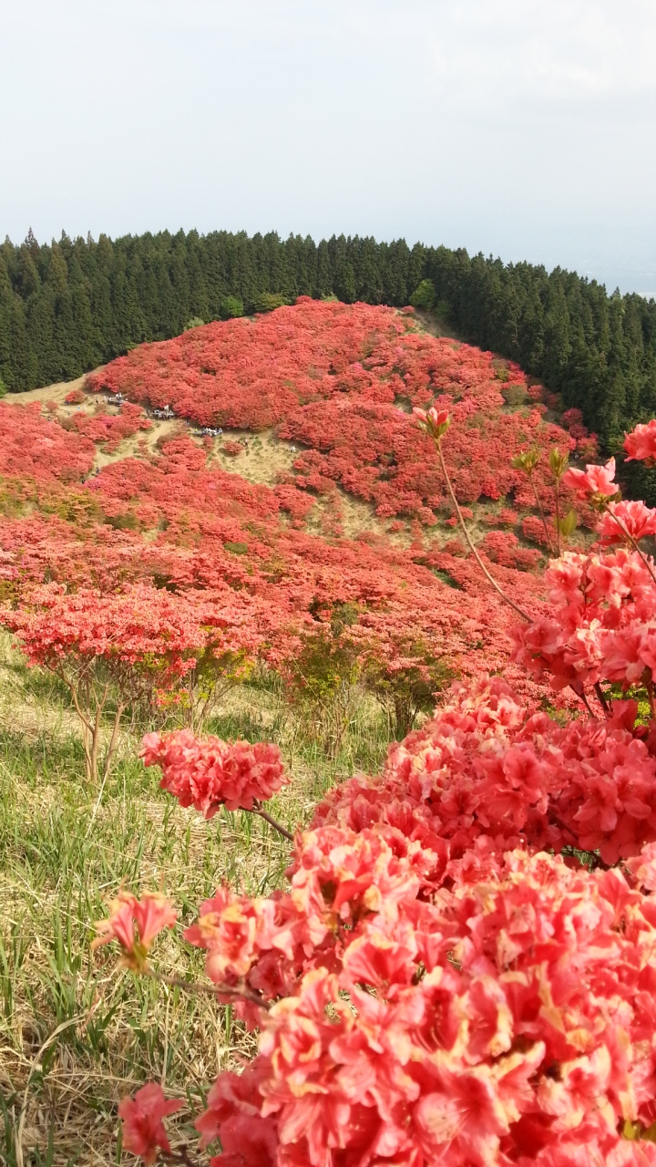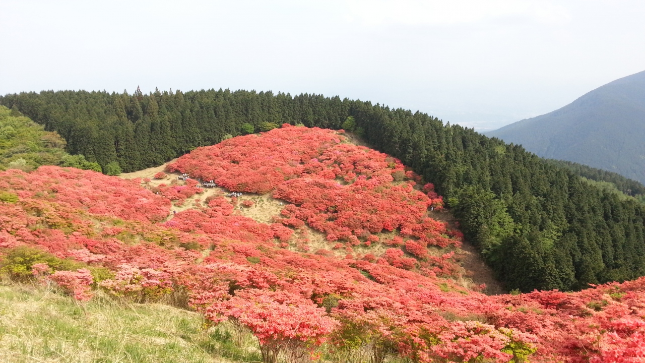 山頂のツツジ園には真っ赤なツツジが一面に広がります。