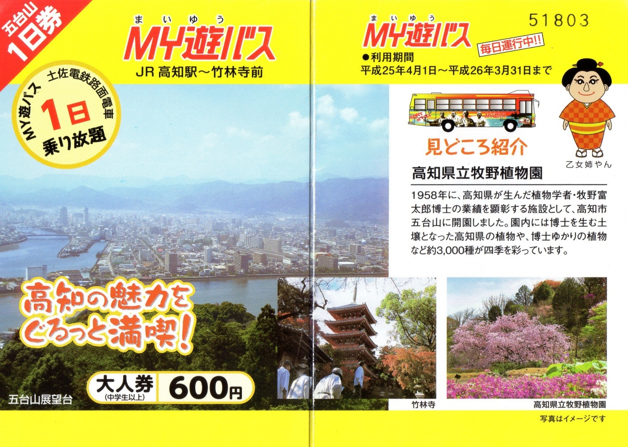 この施設では高知市内の路面電車も乗り放題になる観光バス「MY遊バス」の一日乗車券も販売しています。- 旅行時期