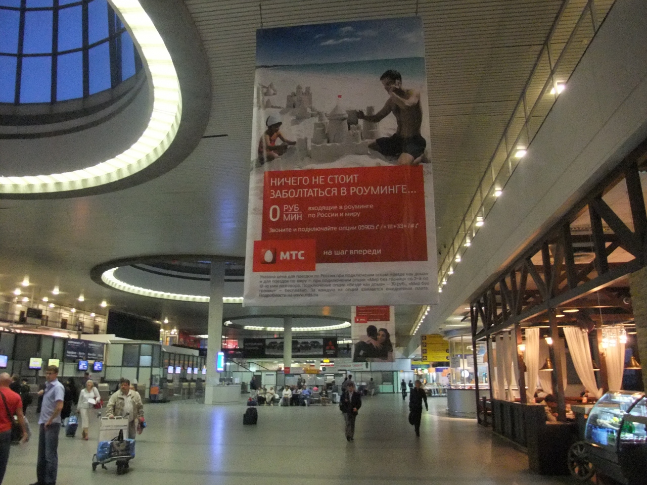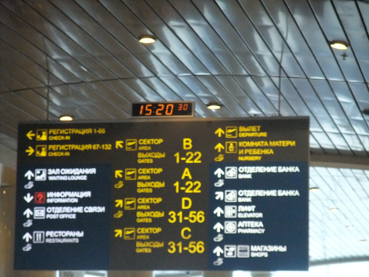 サンクトペテルブルクの空港です。それほど大きな空港ではないので、迷うようなことはないでしょう。空港内は比較的きれいで、トイレもそれなりでした。セキュリティーはモスクワの空港同様に厳しいです。靴は脱がなければならないですし、全員ボディーチェックがあります。当然ペットボトルも没収です。空港の入り口でも手荷物検査があります。
