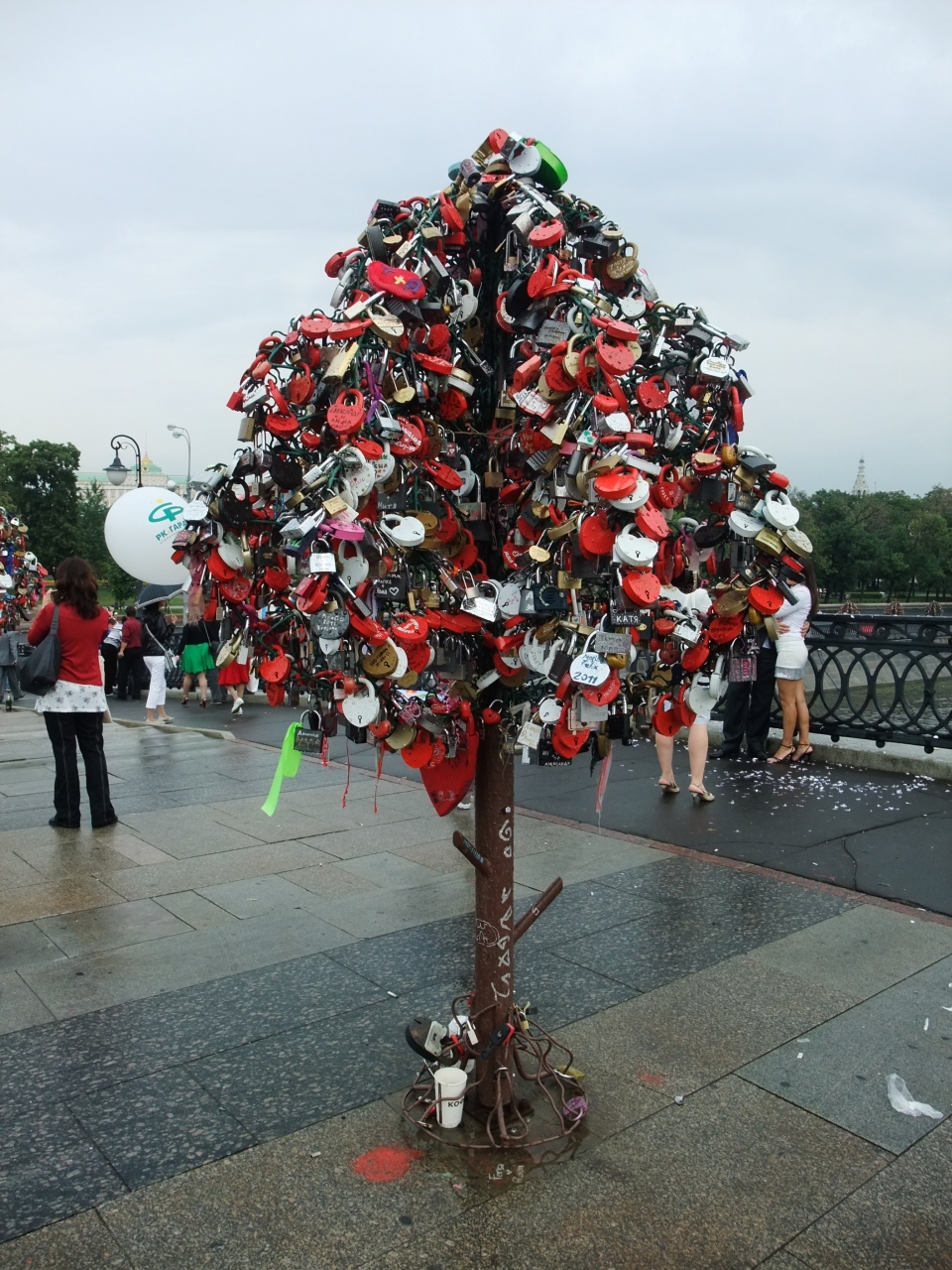 この橋には変わった鉄の木がいっぱい!なんだこれはとよく見ると無数の南京錠が。