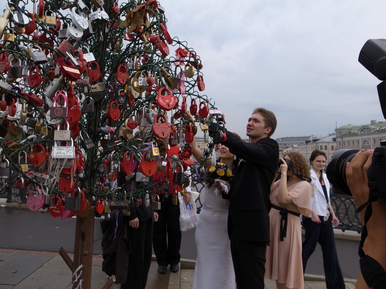 結婚を誓った2人が南京錠を橋上の鉄製の木に括り付けるそうです。