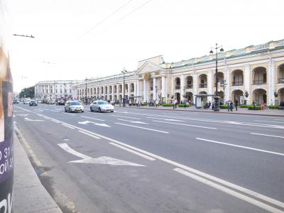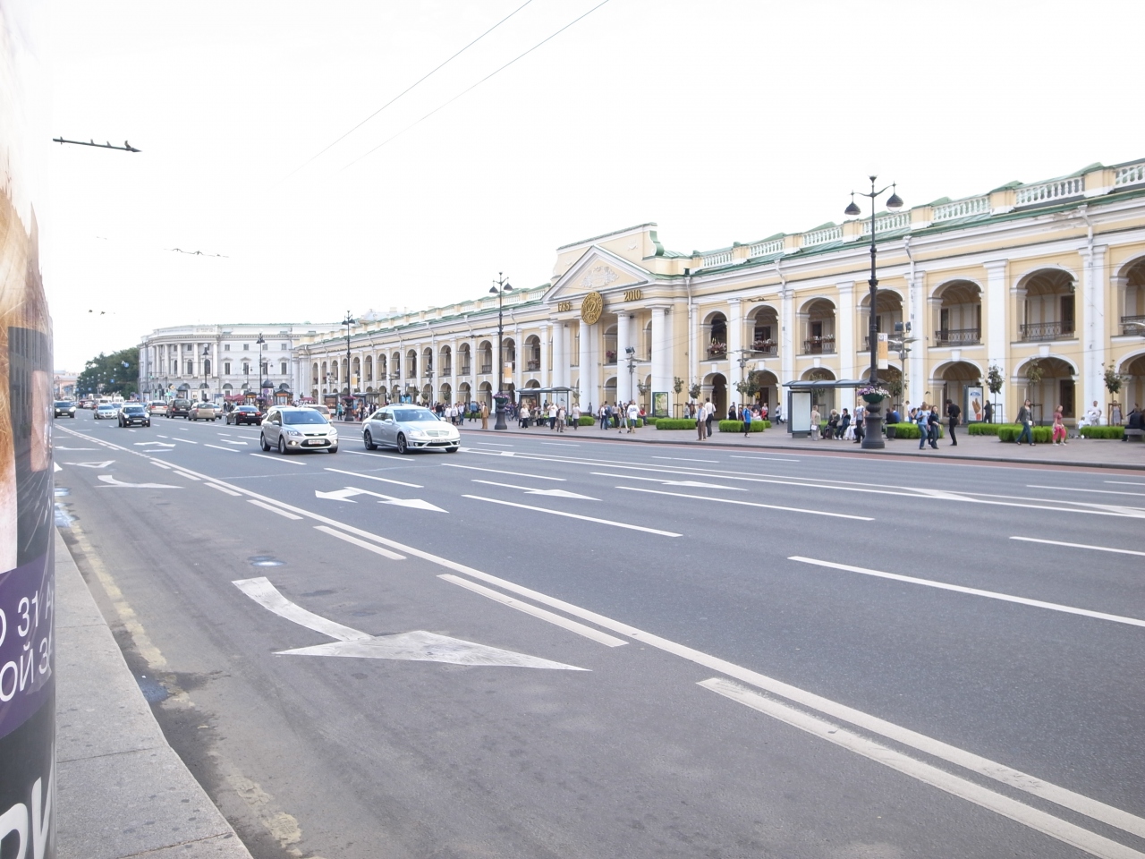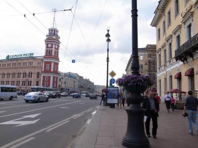 サンクトペテルブルクのメインストリート。人通りも多く、お店が並ぶ中心街ですね。