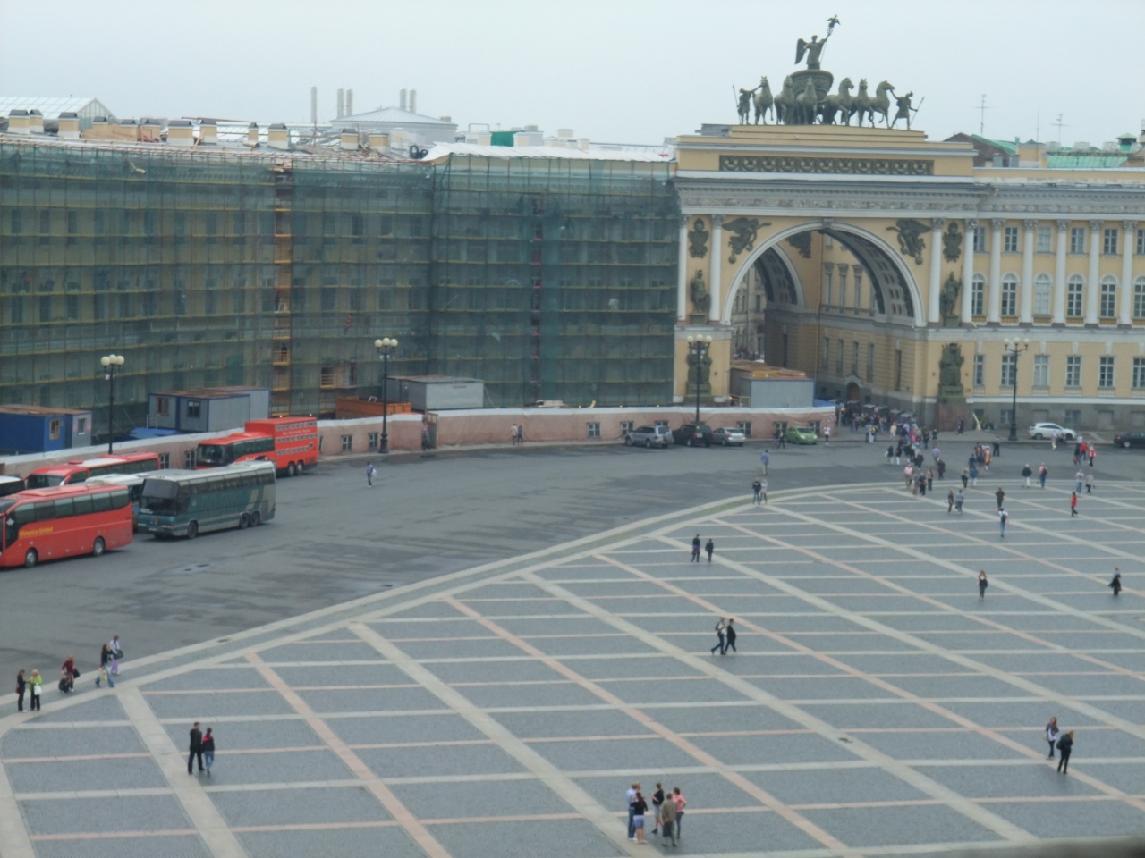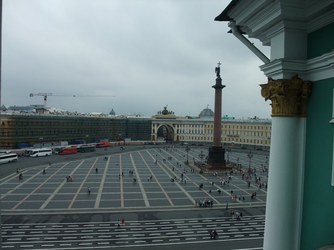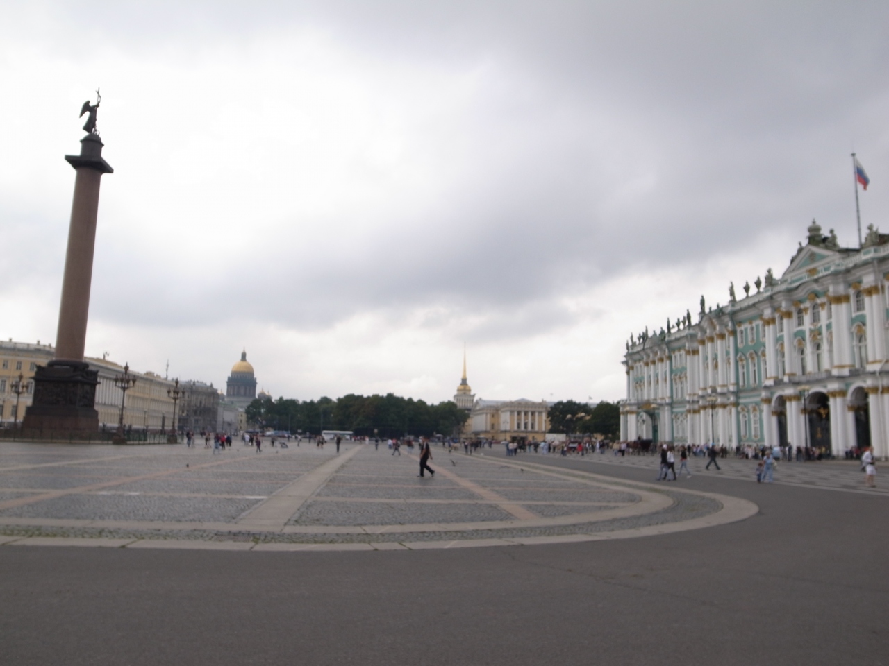 アレクサンドルの円柱を中心に広々した広場です。エルミタージュ美術館と旧参謀本部が広場を取り囲みます。ぐるりと360°広がる空間は壮大ですね。エルミタージュ美術館からの広場の景色もいいですよ。