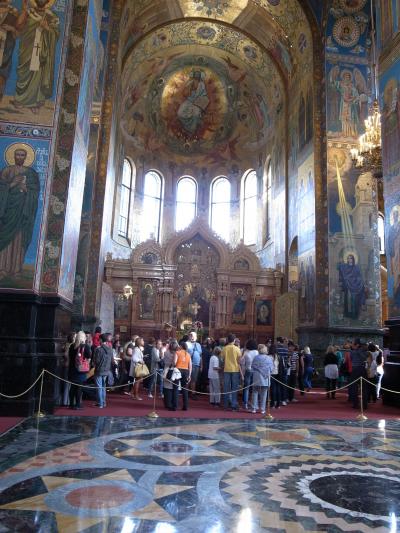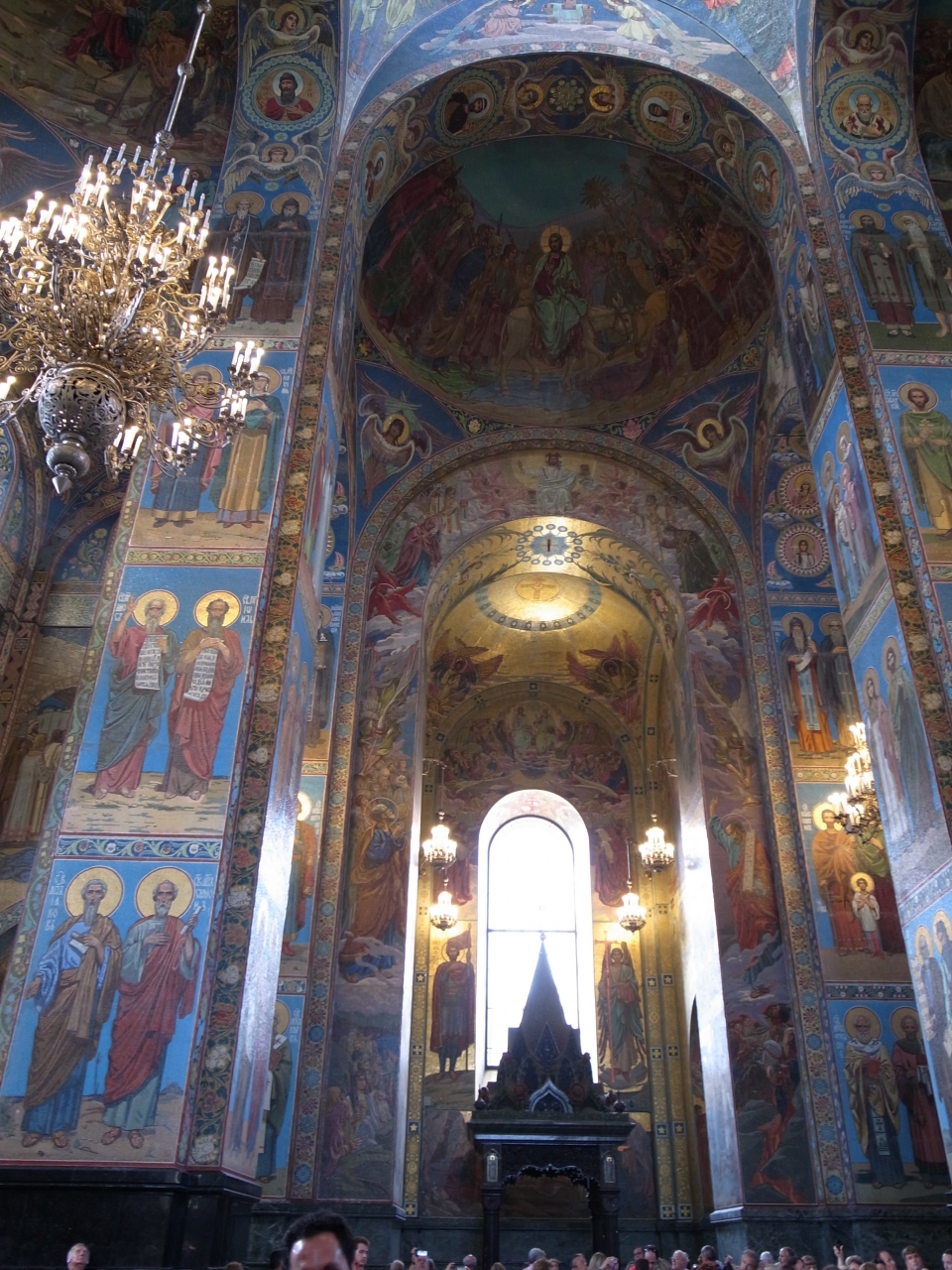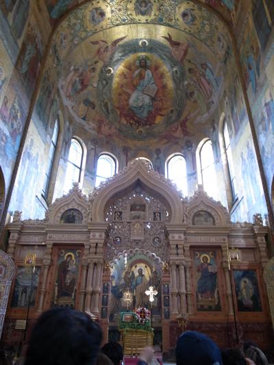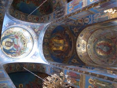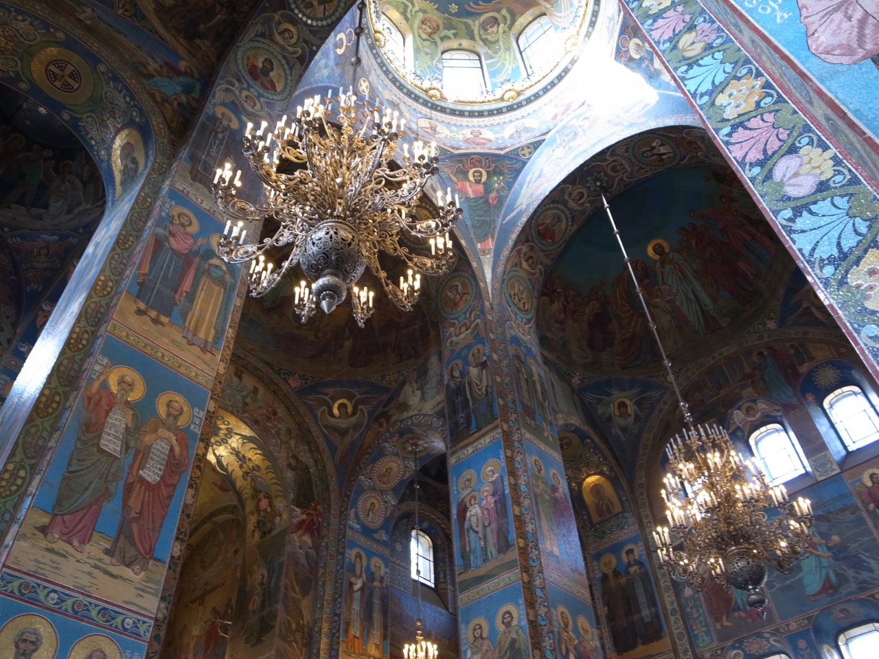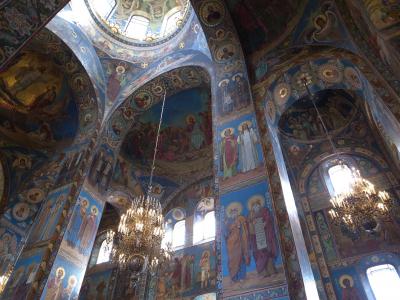外観はロシア建築の特徴のタマネギ頭。内部は天井に至るまで絵画が施された芸術品です。豪華なシャンデリア、壁・天井の絵画、細かなところまで装飾が施されています。館内はそれほど広くありませんが、観光客が多いので混み合っていることが多いようです。