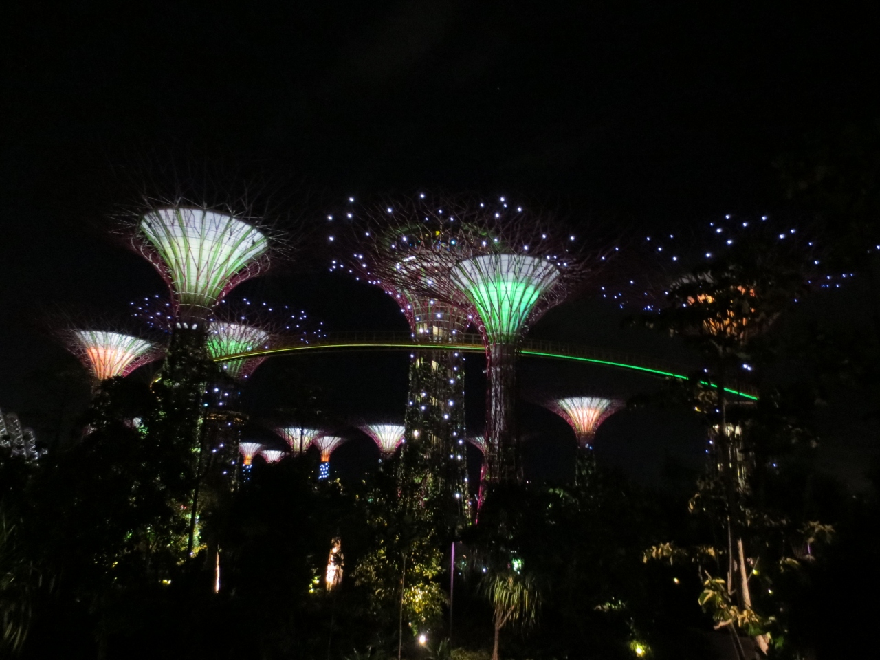 マリーナベイサンズに隣接する植物園です。フラワー・ドームとクラウド・フォレストの2つのドーム型植物園と人口の木「スーパーツリー」とそれを上空で結ぶスカイウェイがメインの施設です。