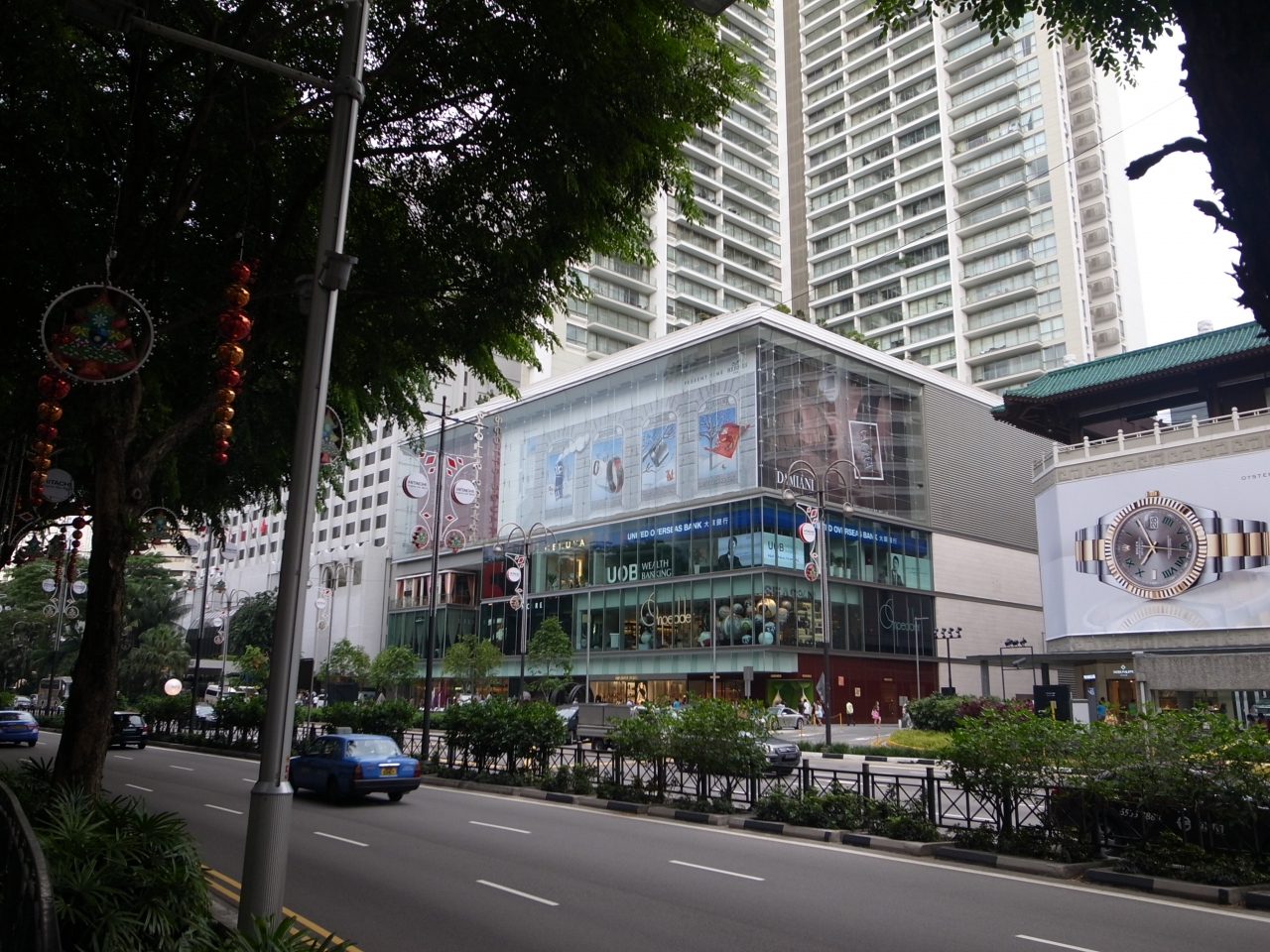 MRTのラッフルズ・プレイス駅からすぐの場所で立地がよく、マーライオン公園などのベイエリアもすぐ目の前で、観光スポットへのアクセスも抜群です。館内は高級感のある上品な雰囲気で、清潔感もあります。特にエントランス入ってすぐの大きな吹き抜けは見ごたえあります。