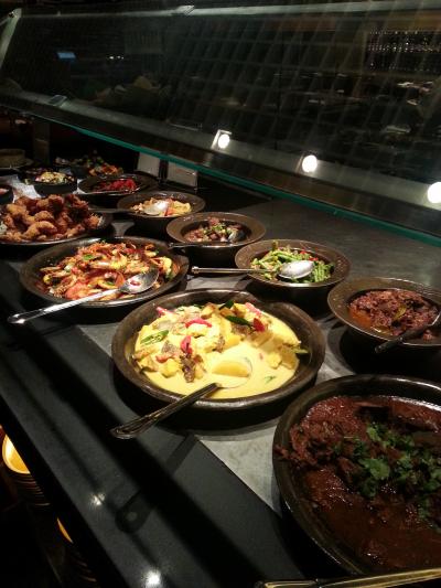 ディナーはブッフェ形式で料理の種類も中華からインド料理、アジア料理など多種多様で、どれを食べるか迷ってしまいます。