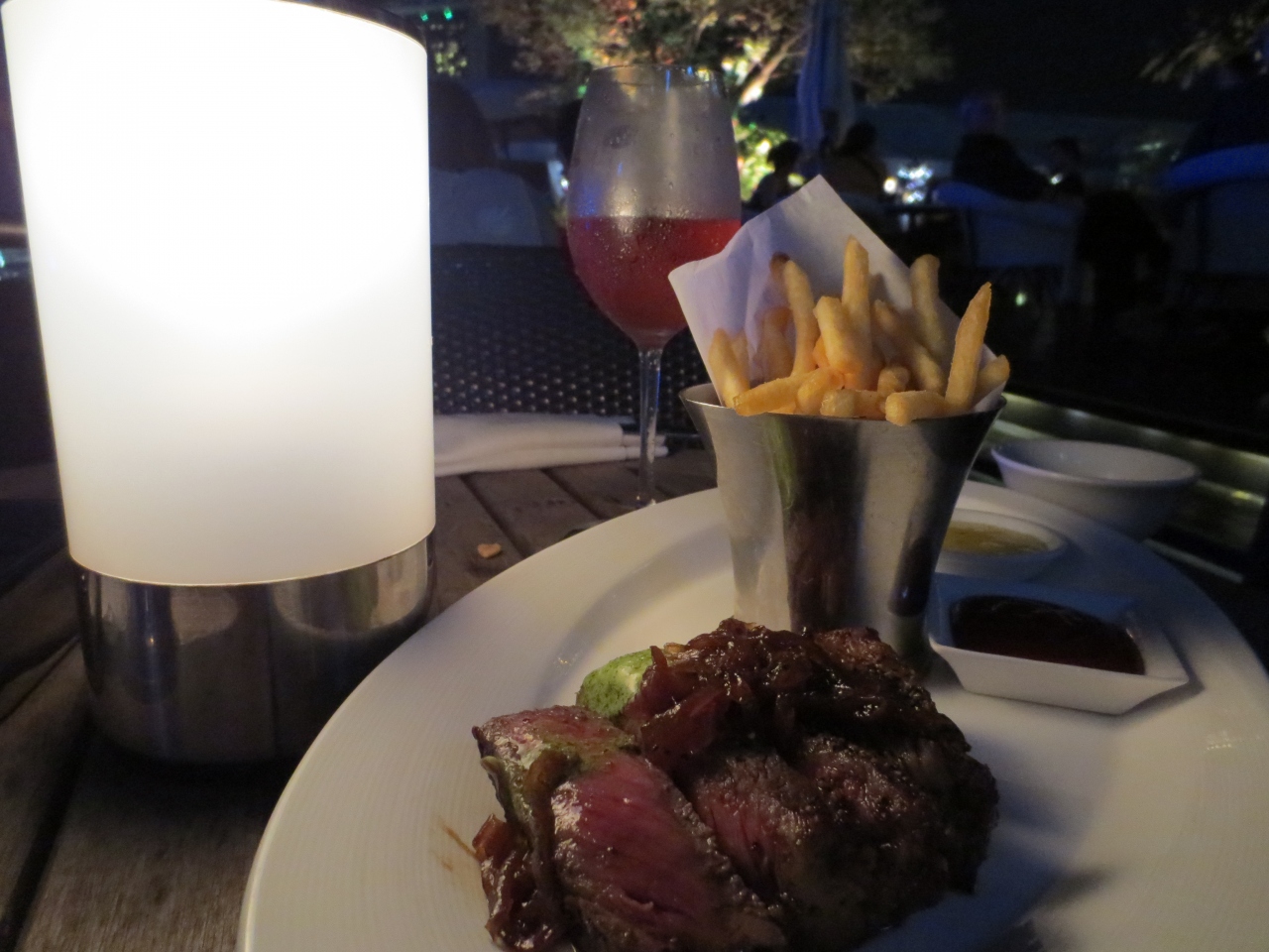 バーからはマリーナベイサンズなどのマリーナベイエリアの最高の夜景を堪能できます。位置や高さなどがちょうどよく、この界隈では一番の夜景スポットだと思います。食事とお酒をゆっくり楽しみながら、景色に酔いしれましょう。夜12時まで開いています。