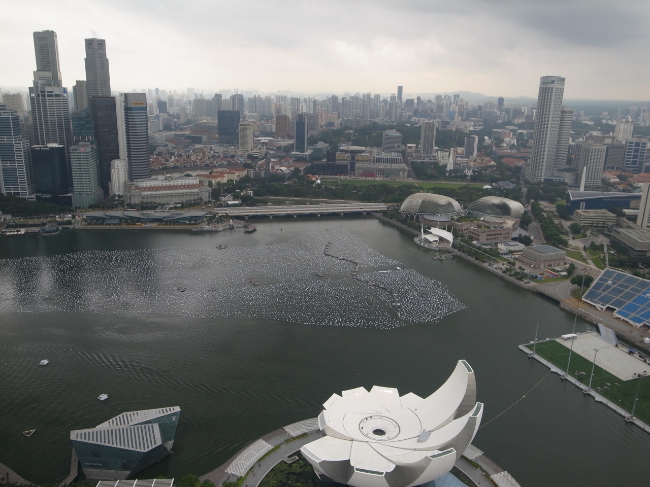 マリーナベイサンズ屋上の展望で、シンガポールの街を一望できます。